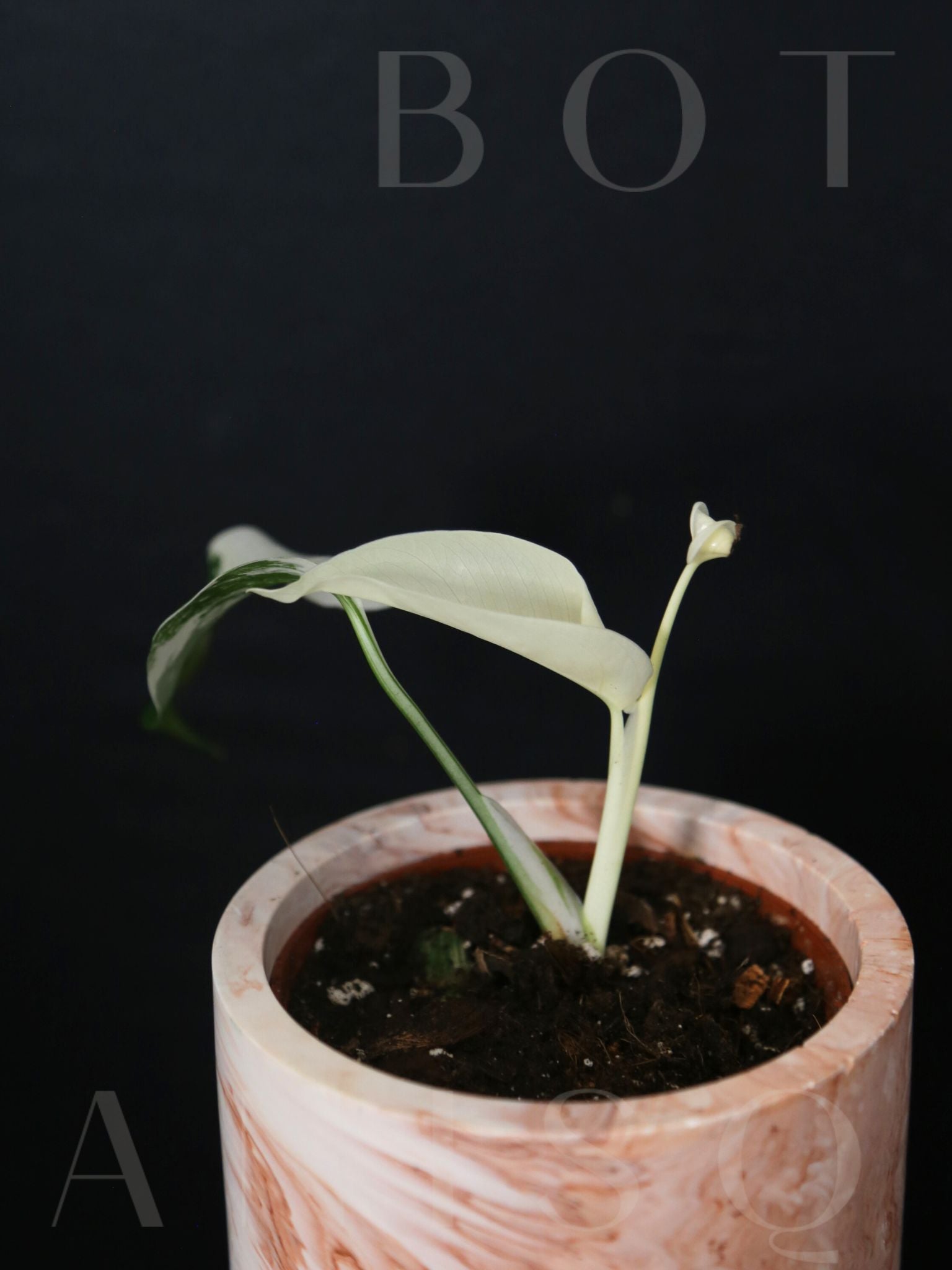 This Monstera Variegata features exceptionally white foliage, including a newly emerging leaf that is almost entirely white, making it a standout choice for collectors seeking rare and highly decorative variegation. Its compact size is perfect for desks, shelves, and small interior spaces, and it makes a thoughtful and impressive gift for plant enthusiasts.