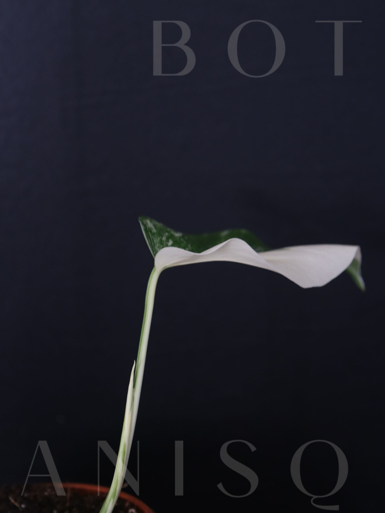 This Monstera Variegata features an almost half-moon leaf with strong white variegation, and the next leaf is already emerging with a high chance of being very white or even fully white. For collectors seeking a plant with predominantly white variegation, this is an excellent and highly desirable choice. Its clean contrast and promising growth pattern make it a standout addition to any variegated Monstera collection.
