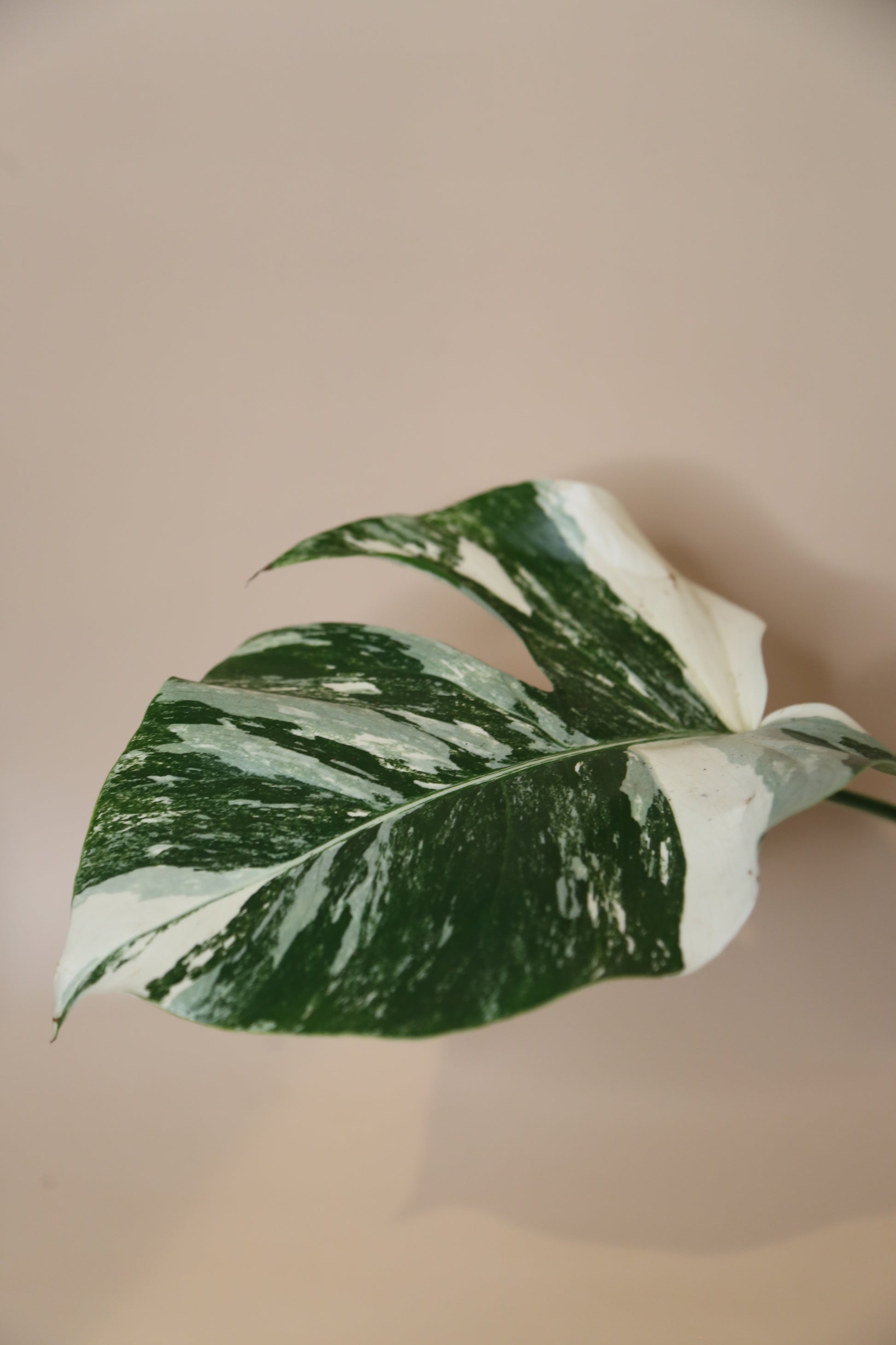 This Monstera Variegata features two leaves, including one with a bold white sector and one fully green leaf. While future variegation can never be guaranteed, our experience with similar plants suggests a strong tendency for alternating variegation, where new leaves often show white patterns every other leaf. This makes the plant especially appealing for collectors seeking character, contrast, and unique expression in their variegated Monstera.