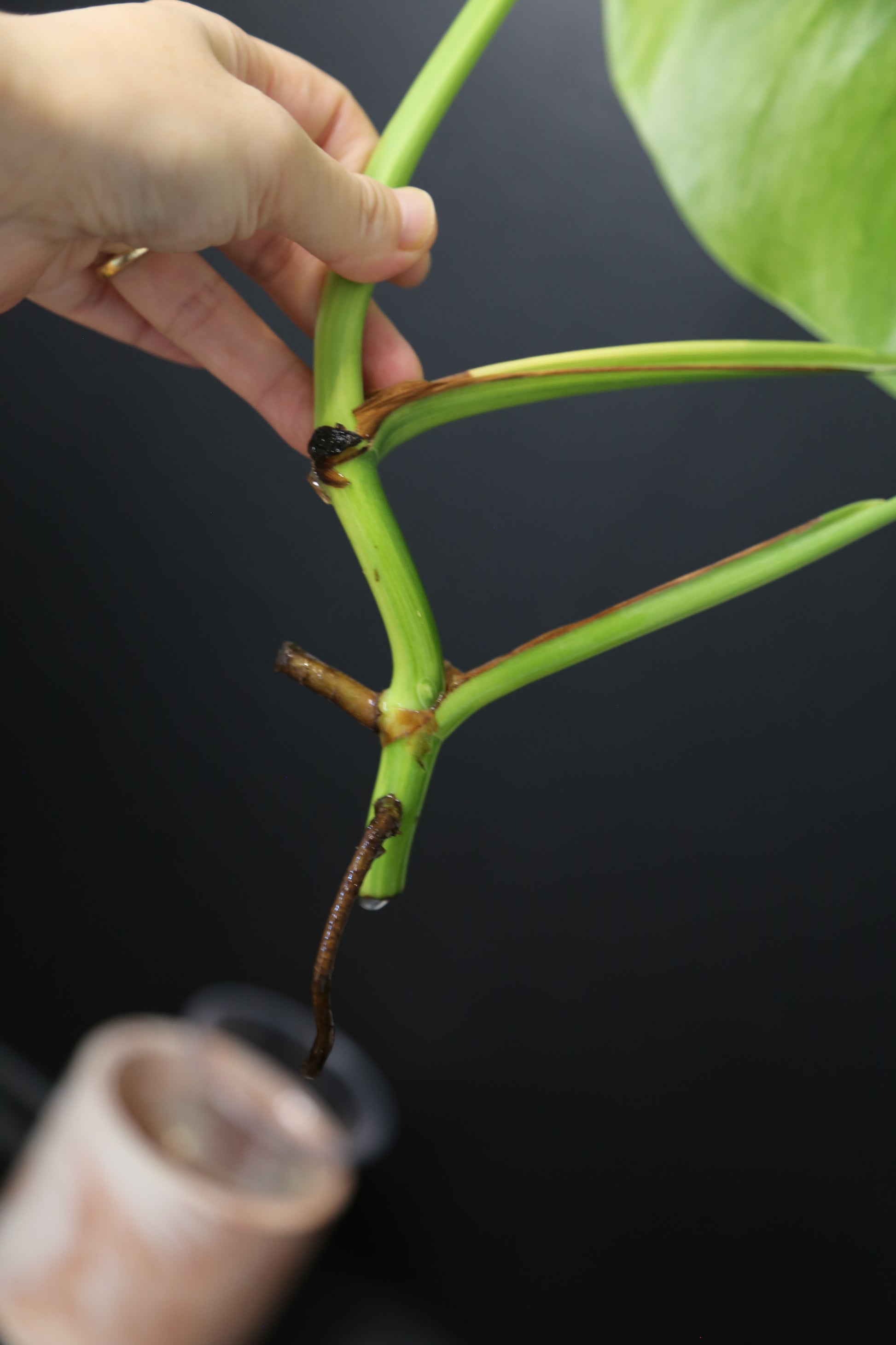 - Soil: Use a well-draining, airy aroid mix containing materials such as bark, coco coir, perlite or pumice to support healthy root growth.