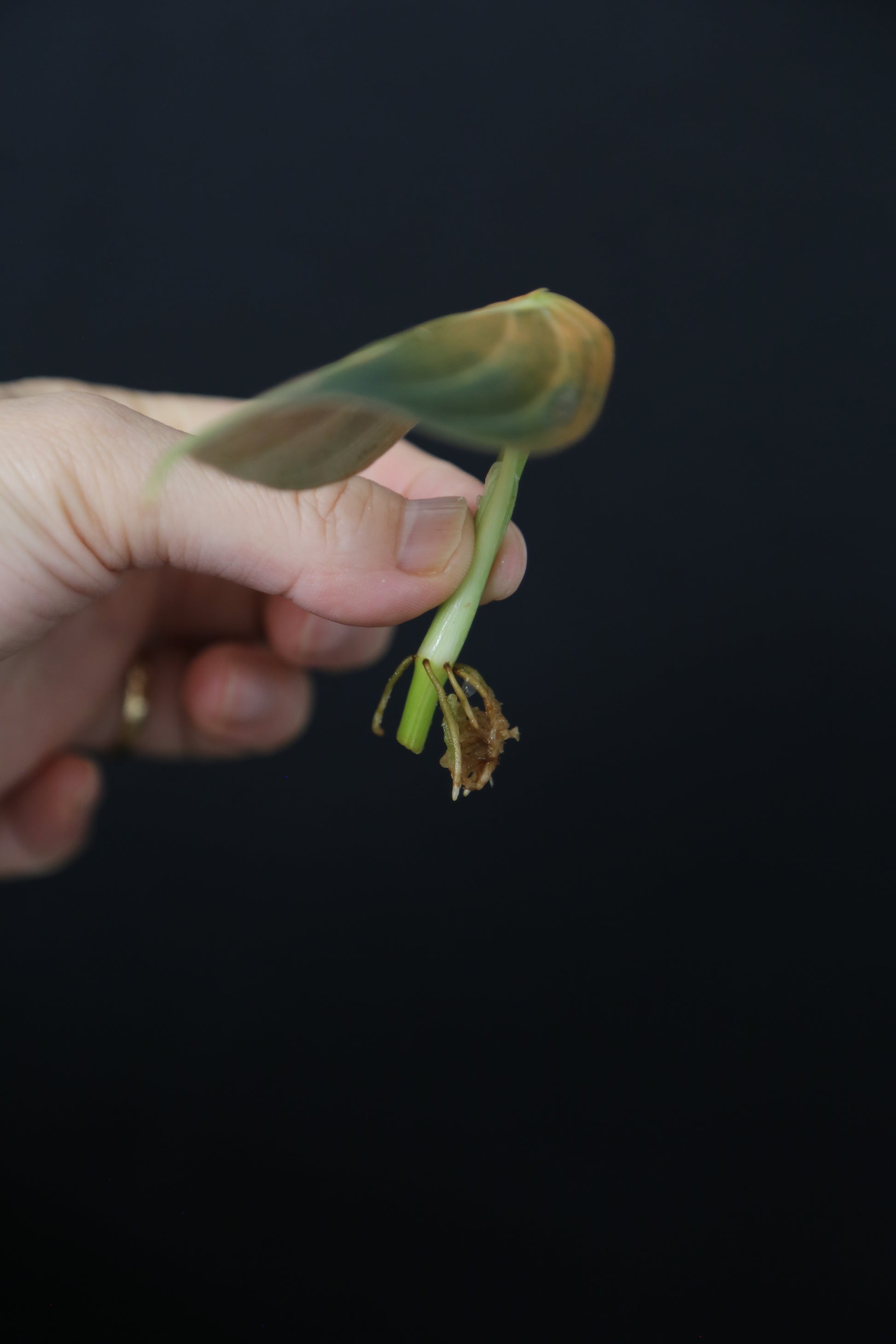 This cutting comes from a healthy and stable mother plant with strong variegation. The roots are already well developed, and the plant has begun preparing its next leaf, showing active and promising growth.